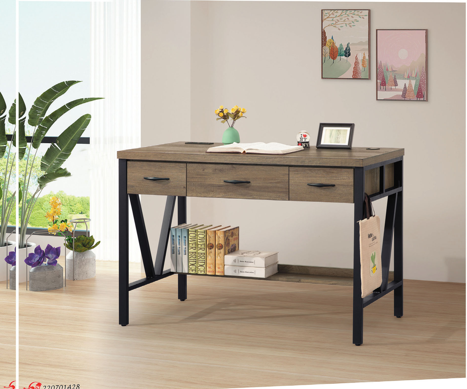 炭燒白橡4尺鐵架書桌 寬120×深57.8×高81.2公分 (8700)(附插座) 346-2 灰橡4尺鐵架書桌 寬120×深57.8×高81.2公分 (8700)(附插座) |