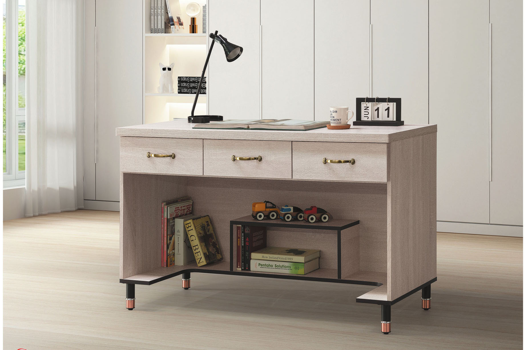 鋼刷白3.5尺二抽書桌下座 寬104.5×深58×高82公分 (5550) 353-4 鋼刷白4尺三抽書桌下座 寬121×深58×高82公分 (6150) |