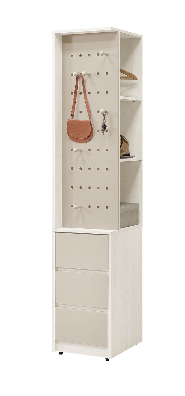 蕾佳娜2.6尺二抽推門衣櫃 寬79x深60x高209(公分) A22915 (152500) (重型無聲軌道.抽屜底板5mm) (採斜邊手把設計) 224-9 蕾佳娜1.3尺洞洞板三抽櫃 寬39.5x深56x高209(公分) (117500) (實木木栓加上洞洞板)(左右皆可擺放) (附2片活動隔板.洞洞板附6支木桿配件) (可依個人需求.變化內部隔局) |