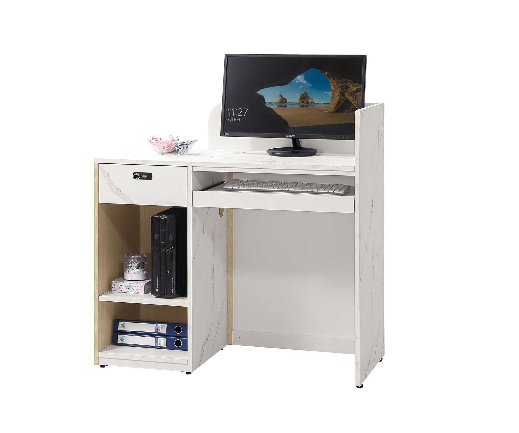 洛蒂3.3尺多功能桌 寬100x深45x高100(公分) (104200) (附1片活動隔板)(抽屜採用密碼鎖設計) (不可訂製) (仿大理石紋美耐皿桌面) |